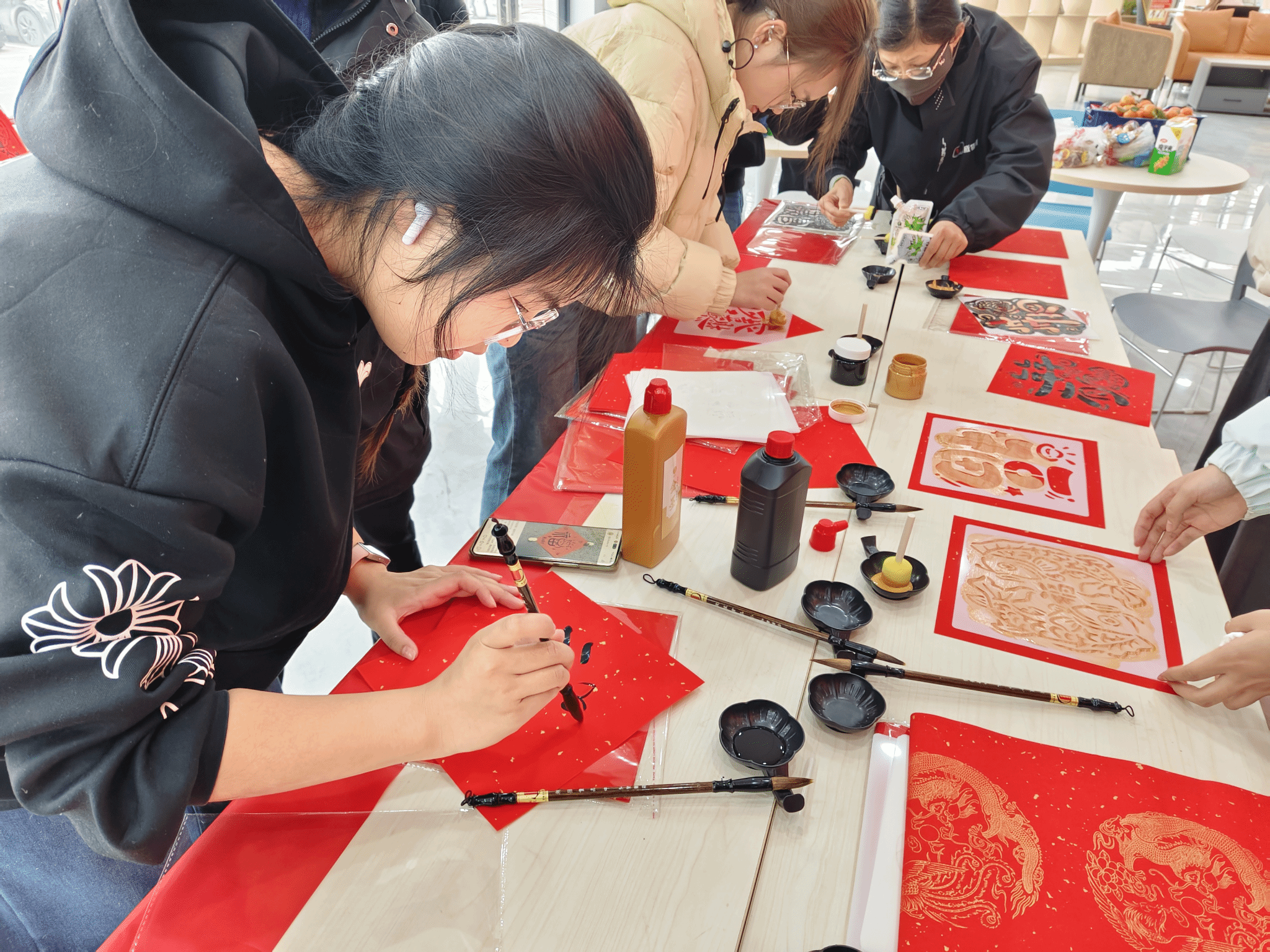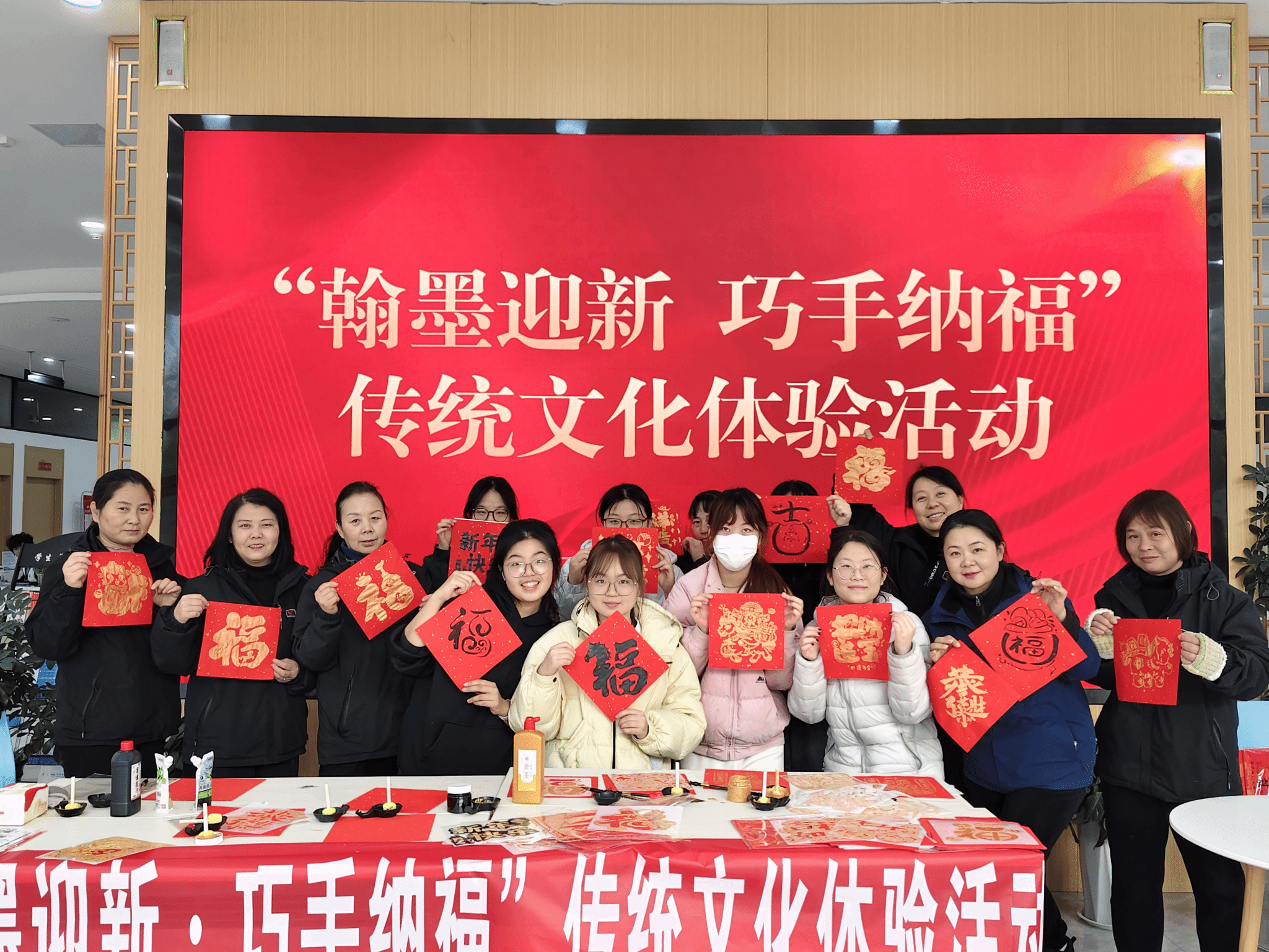 12月31日,由学生公寓管理中心主办、远成物业服务公司协办的“翰墨迎新·巧手纳福”传统文化体验活动,在“一站式”大厅温情启幕。活动面向全体学生开放,以分区自助、随到随参与的形式,让同学们在沉浸式实践中感受传统民俗的独特魅力。